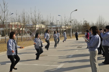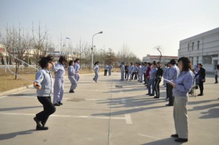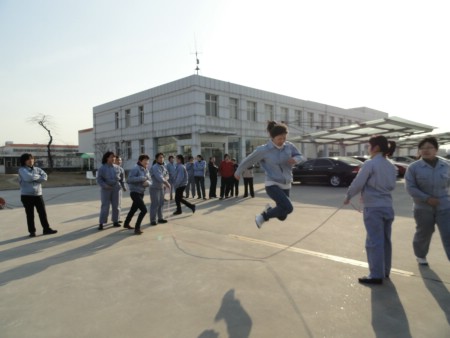 三月八日,風(fēng)和日麗。公司工會(huì)舉辦的慶“三八”婦女節(jié)活動(dòng)在辦公樓前舉行。來自各工會(huì)分會(huì)的近70名女職工,參加了毽子比賽、跳繩比賽、跳長(zhǎng)繩比賽。下午三點(diǎn),伴著輕快的音樂,各項(xiàng)活動(dòng)逐一展開。